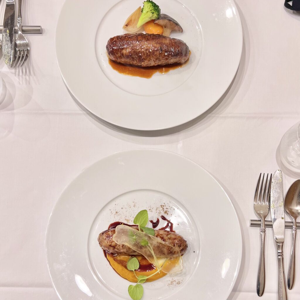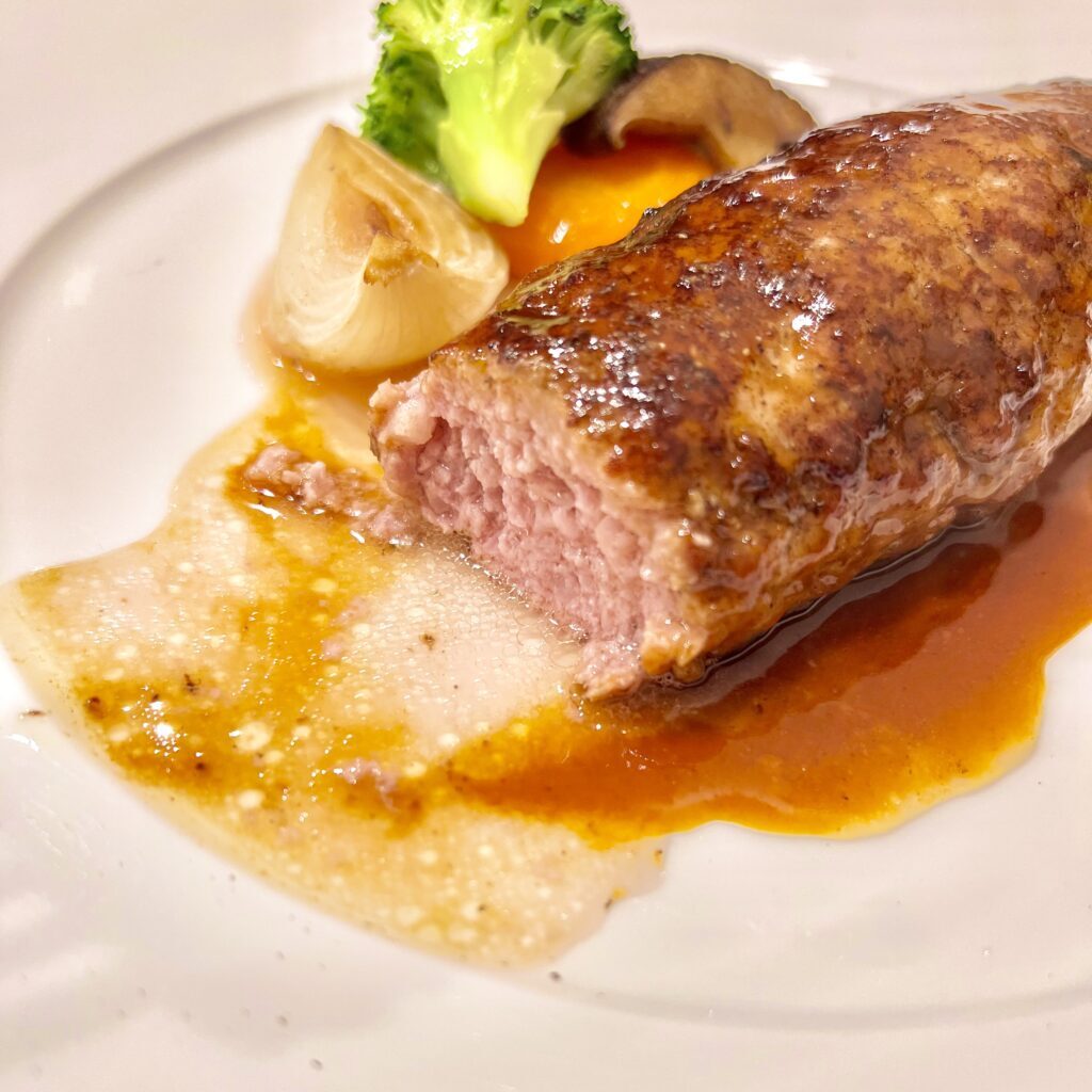 そして、メインのハンバーグステーキと豚足の脂網包みシンデレラ風。