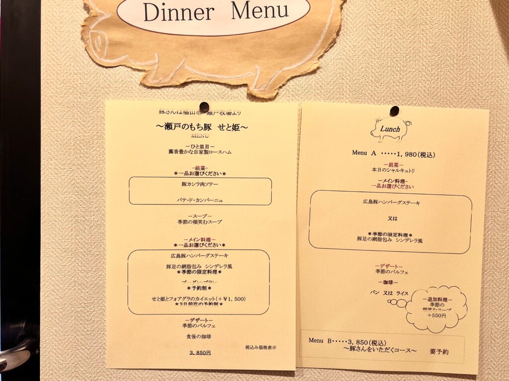 せと姫のさまざまな部位を、さまざまな料理で楽しめる、せと姫専門洋食レストランです。お料理がとっても華やかなので、大切な日にもおすすめですよ。