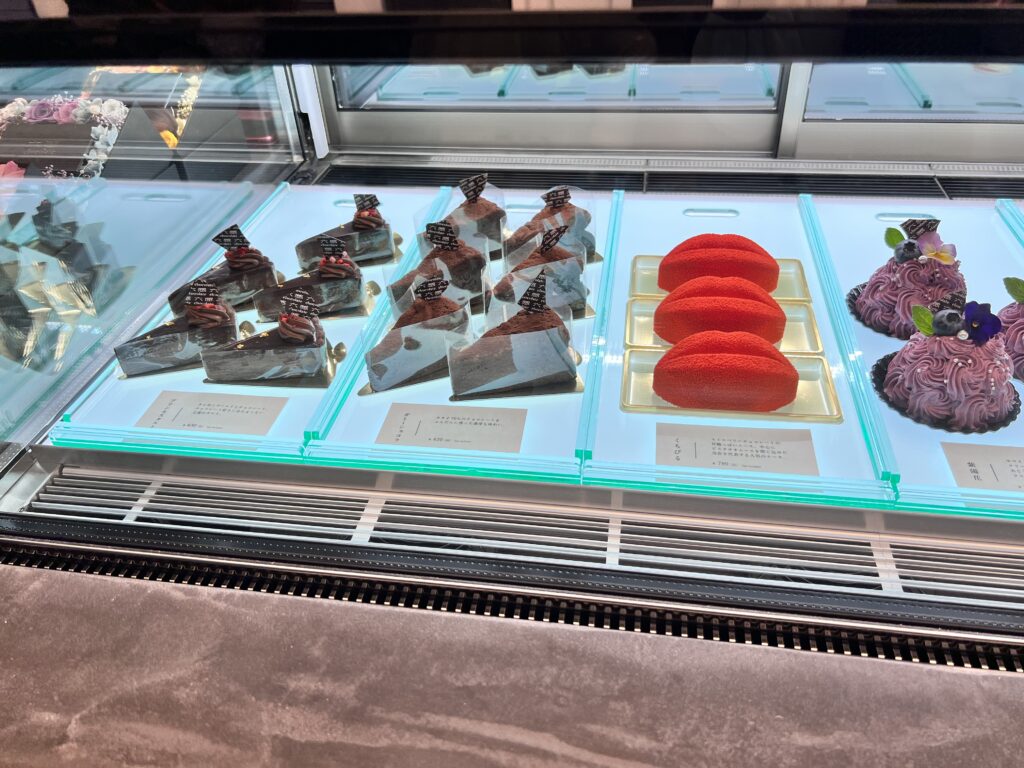 チョコレートは一粒から購入可能。焼き菓子もあり、ケーキ類は季節限定商品あり。