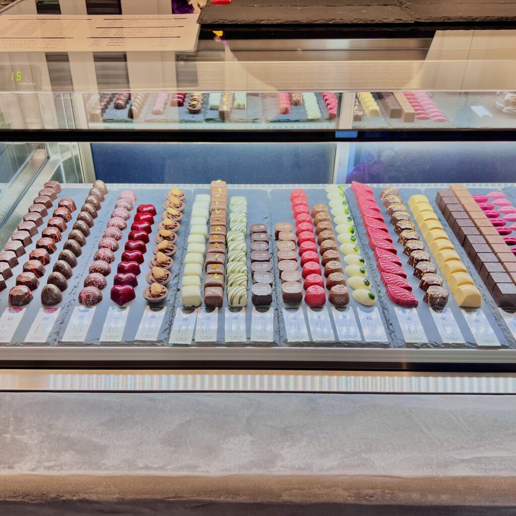 目の前にはキラキラとジュエリーのように並ぶチョコレートとケーキたち。