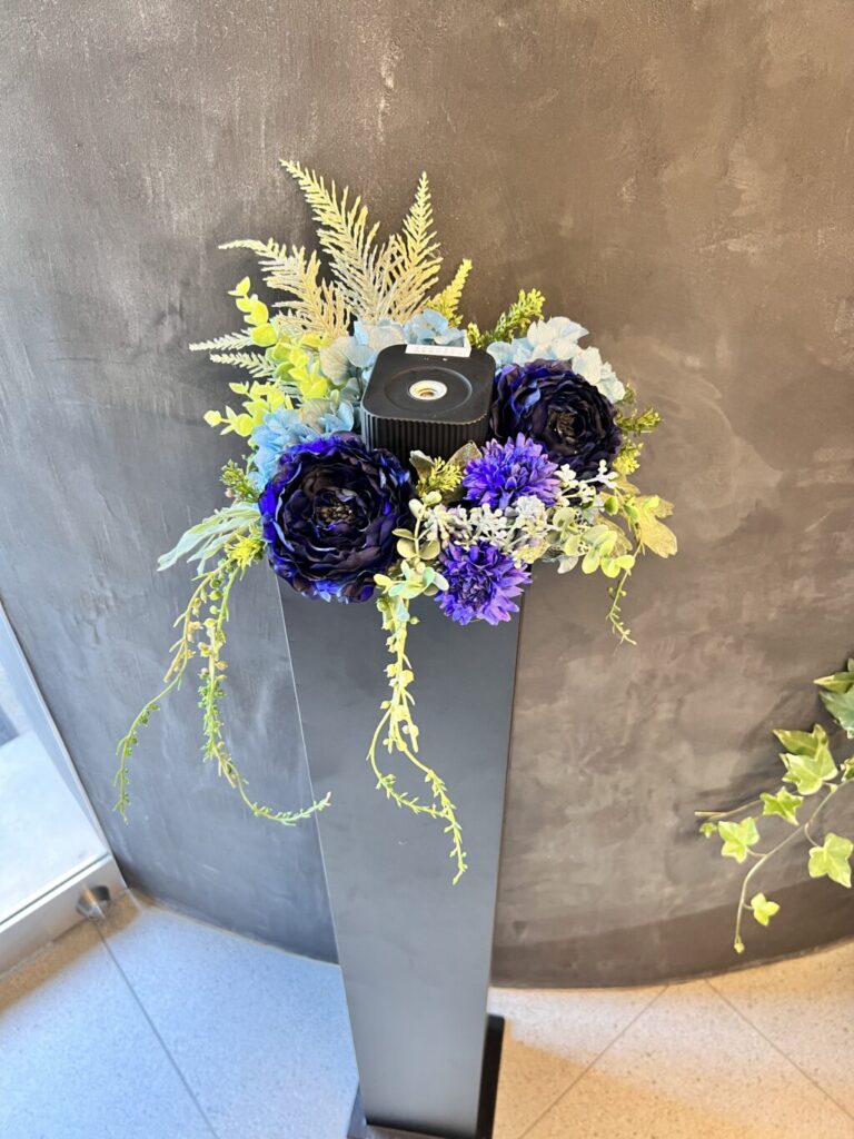 店内のアルコール消毒まで六感らしい!青とグレーを基調としたシックでおしゃれな空間。