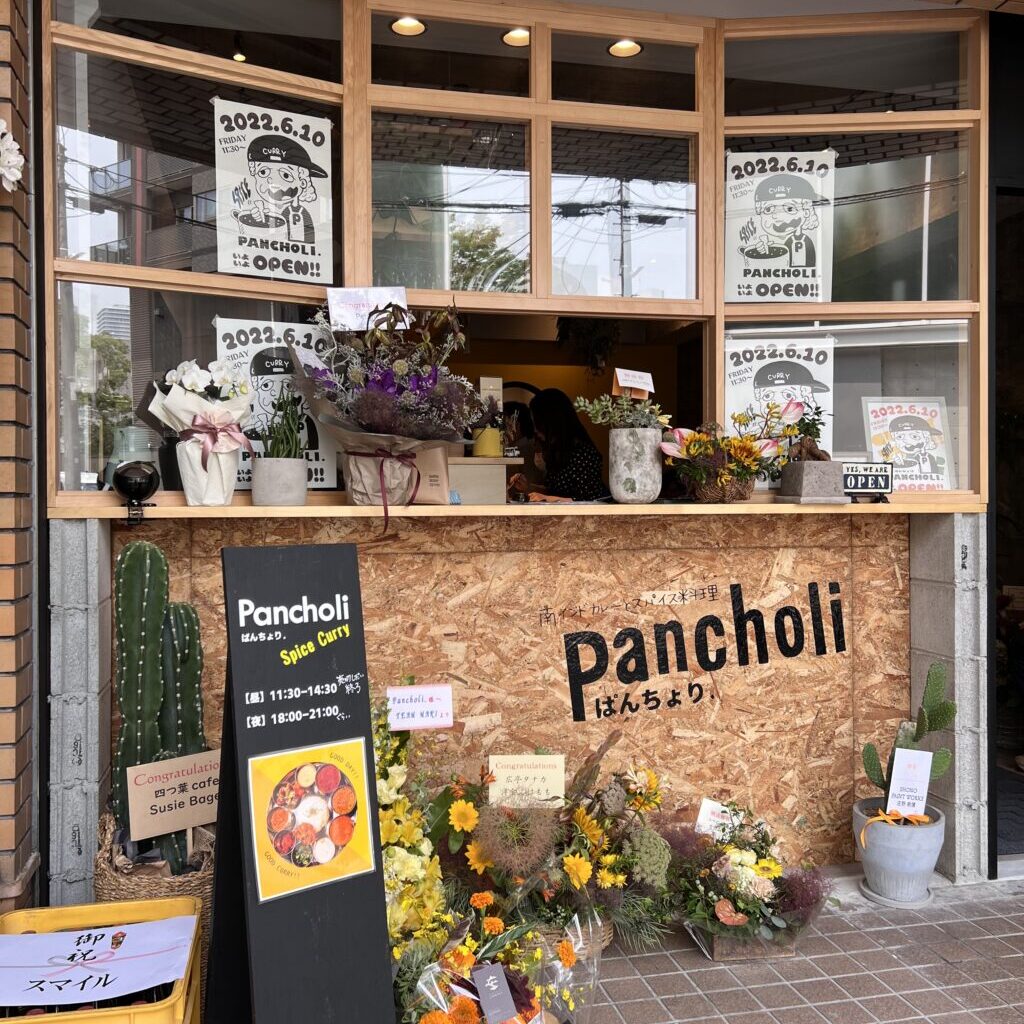 お店の前にはお祝いのお花もたくさん。オープン日のランチは行列ができていました!店の前までカレーのいい香り!