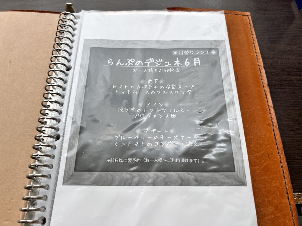 こちらは前日までの予約で楽しめる、月替わりのランチコース。