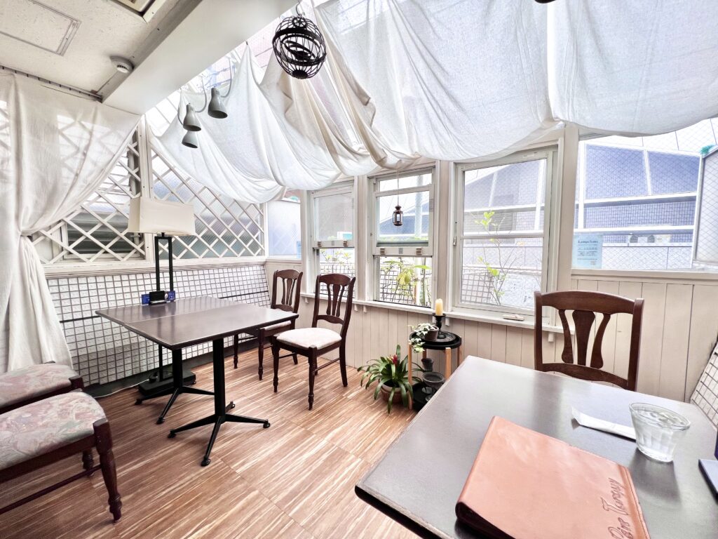 カウンター席、テーブル席と、サンテラス席があり、シックでクラシカルな雰囲気も明るい雰囲気も楽しめます。