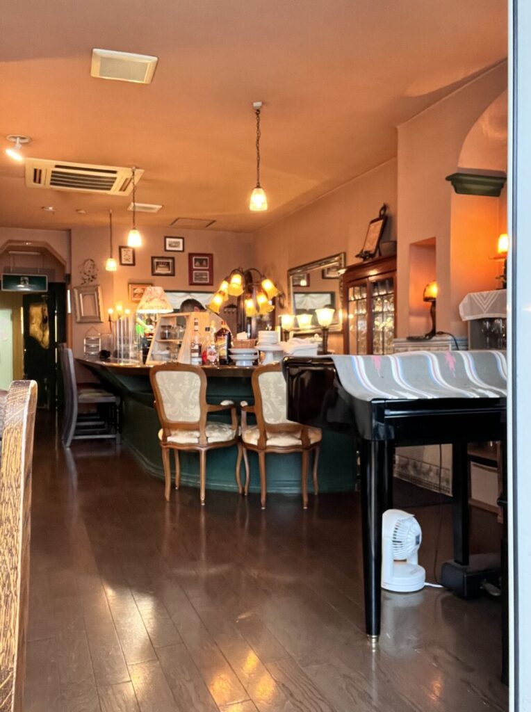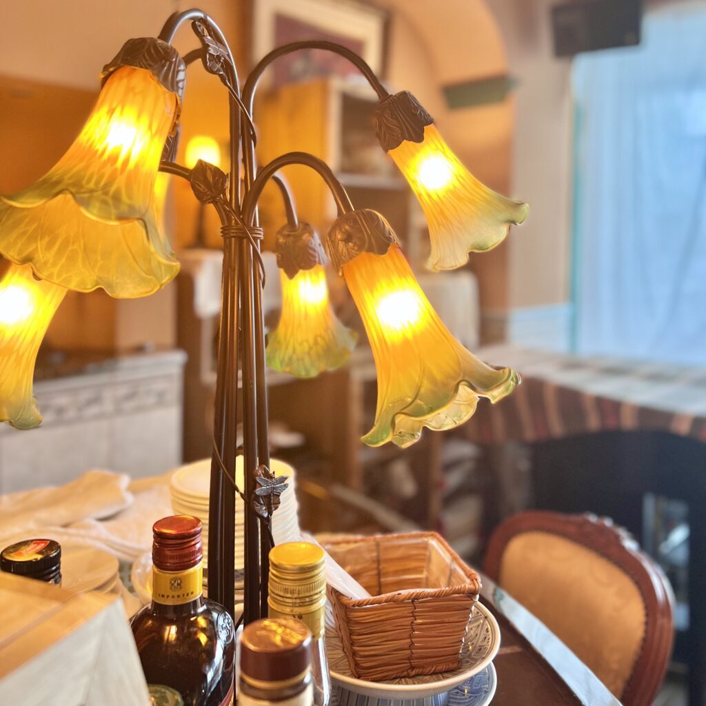 店内は色んなランプが飾られ、クラシカルで落ち着いた雰囲気!