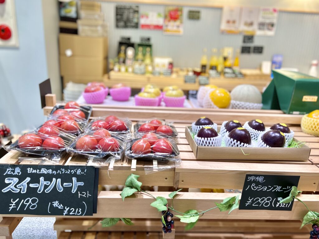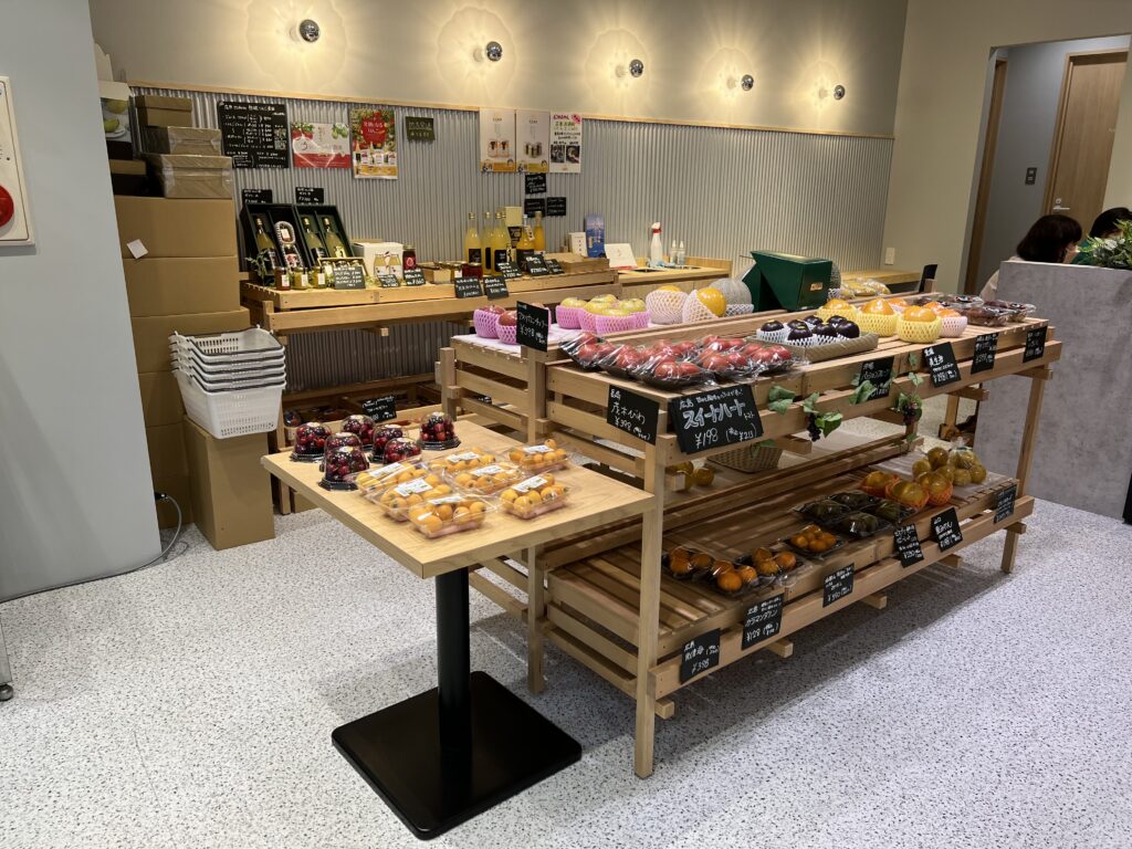 イートインスペースはフルーツ売り場の奥に、カウンター席が6席。サンドイッチやフルーツジュースが楽しめます。