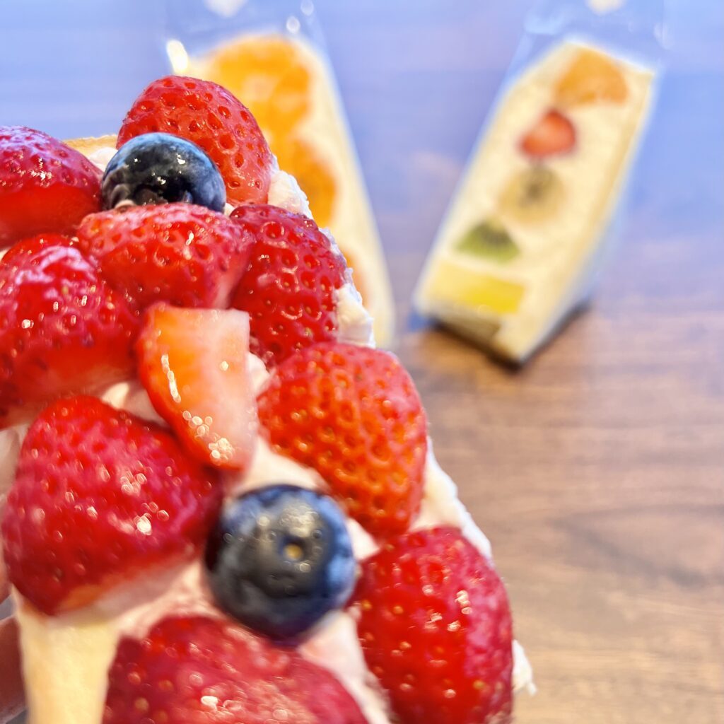 フレッシュでジューシーな果物たち!果物を楽しむためのフルーツサンドといった感じ。美味しい果物でビタミンチャージに満足したおやつが楽しめますよ。