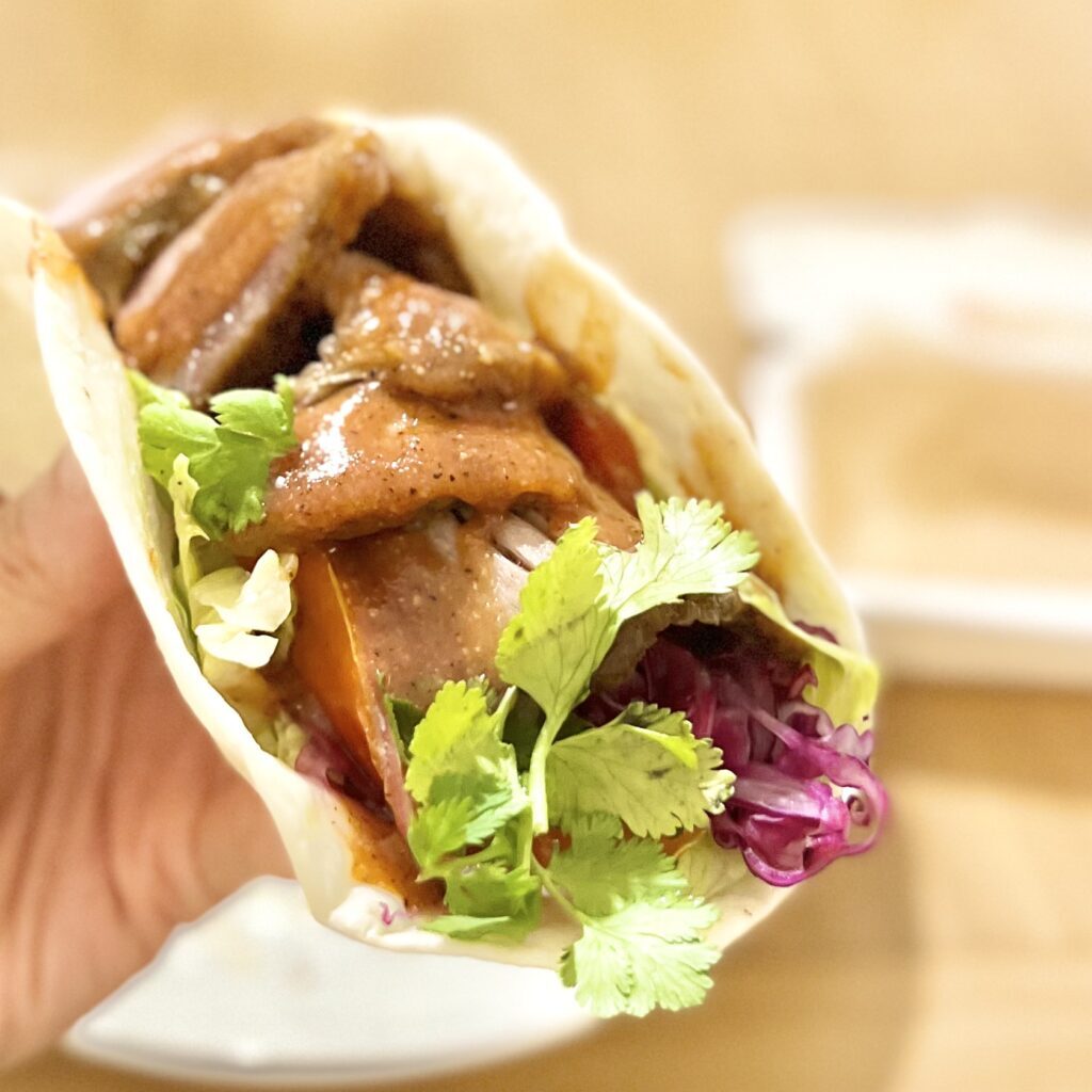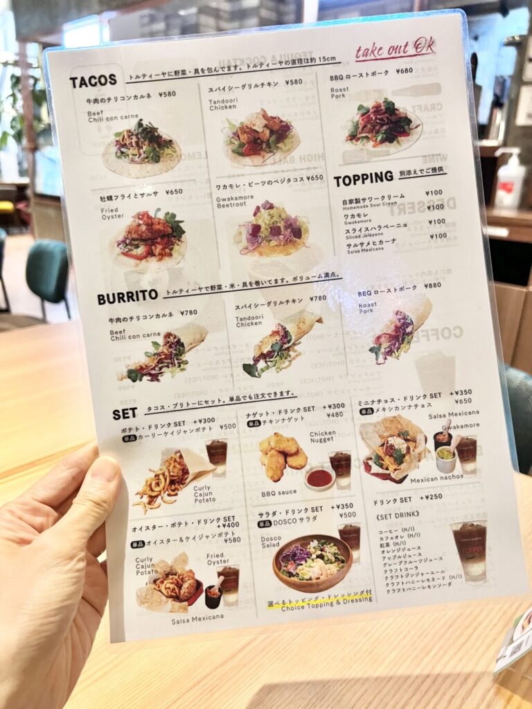 タコスのトルティーヤは15センチ。お肉がガッツリ乗っているのでボリュームはありますが、野菜のみのメニューならサラダ感覚で食べられそう。