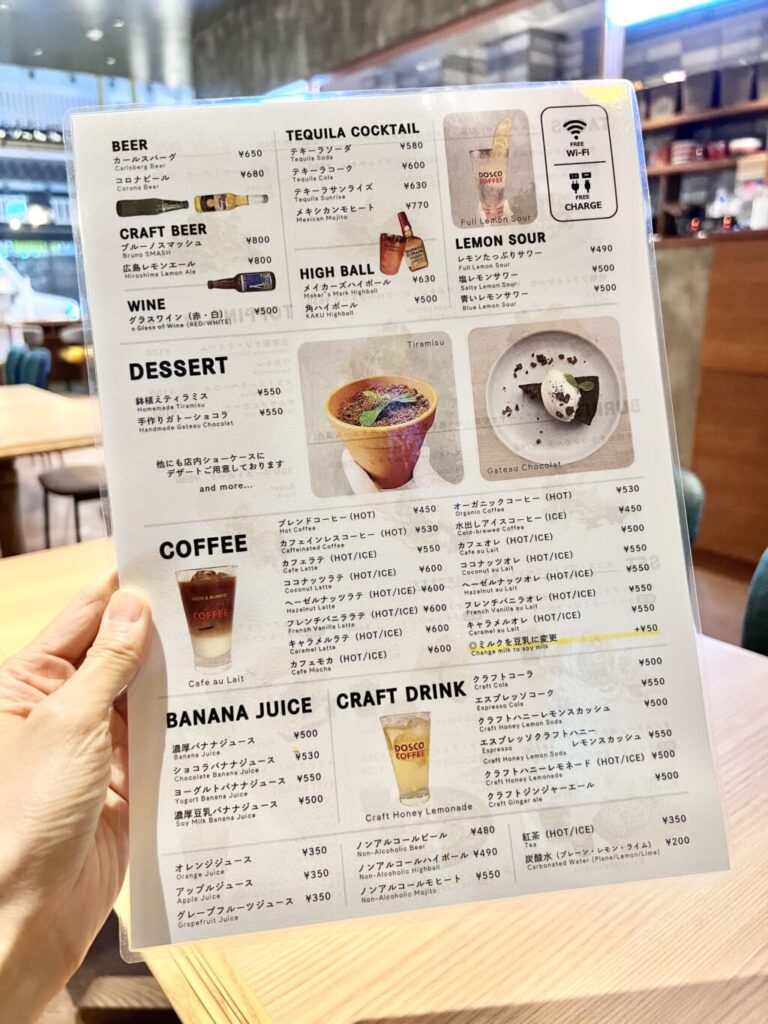 夜遅くまであいていて、wi-fi、充電のサービスもあ理、ドリンクメニューも充実しているので、夜カフェ利用も快適。