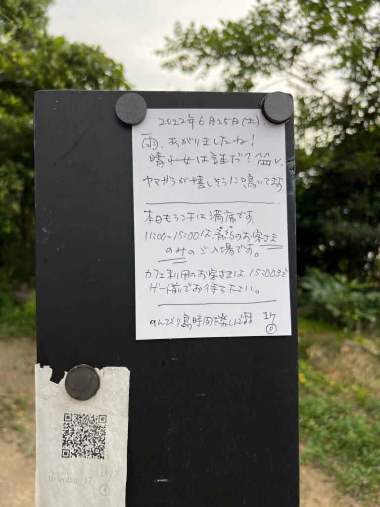 11時からの予約で、10時半過ぎに到着しました。入り口にはメッセージが。