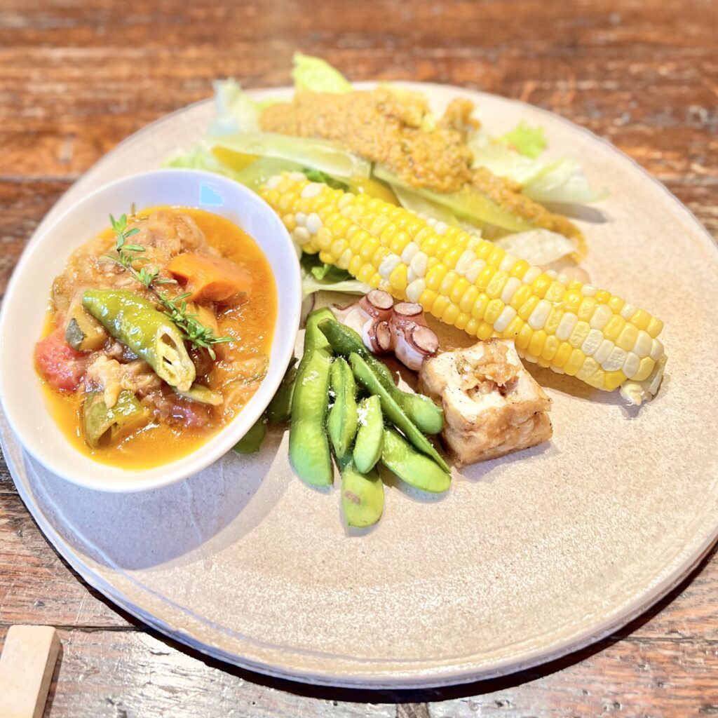 旬の物をはじめ、形の良くないものなどを取り入れ、全て食べ切る、素材からメニューを決めて余さず調理することをコンセプトにした自然のも人にも優しいランチ。