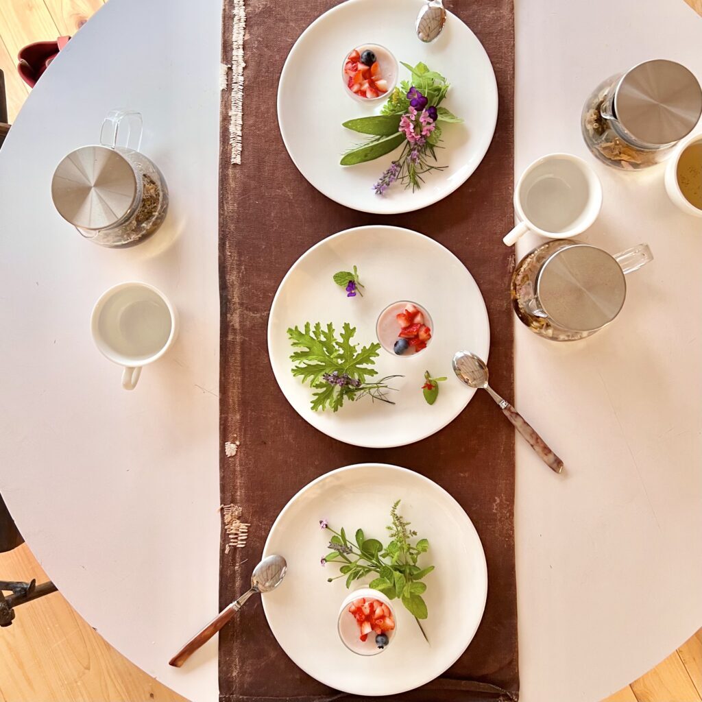 ドリンクの追加でハーブティーを。こちらも江田島でヨガをされている方がブレンドしたもの。さらに、お料理にも使われていたトマトも、江田島で栽培されていて、直売所もあるとのこと。食後に寄ってみようとみんなで話しながら、江田島プチ旅行計画も進みます。