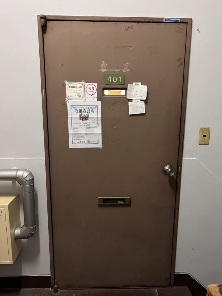お店の前まで来ても不安が拭えないような空気。こちらの茶色いドアを開けると、いよいよ入店です♩