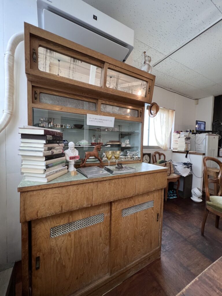 店内はアンティーク調の作り。テーブル席は足踏みミシン、読書が好きな店主らしい、本が置かれていたり、雑貨が装飾された、とても癒される空間!