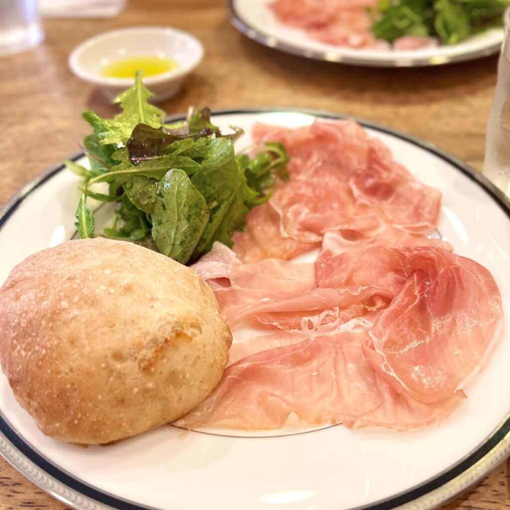 現在のランチはスタッフの入れ替えもあり、自家製パンと生ハムを中心とした1種類。生ハムのカットにこだわった、エアリーで香り高い味わいが楽しめます。