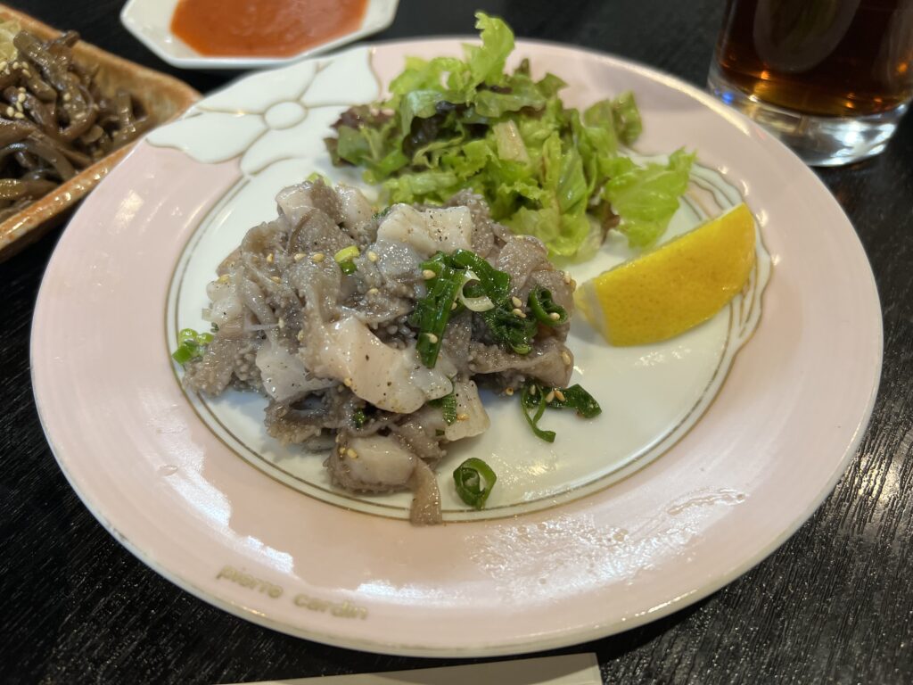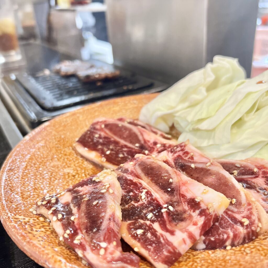 胡椒で揉み込まれたセンマイ刺や、骨つきカルビ、ホルモンの焼肉が人気メニュー。