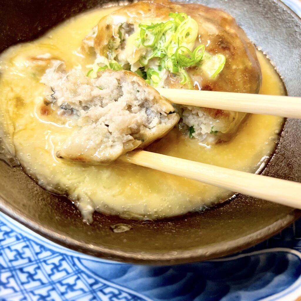 金色のまったりとしたソースがかかっています。鰯と薬味の効いたハンバーグ。この美味しさは他では感じられない逸品です。ツミレでも、鰯団子でもなく、鰯のハンバーグです。ソースは卵黄をベースにした絶品のお味。