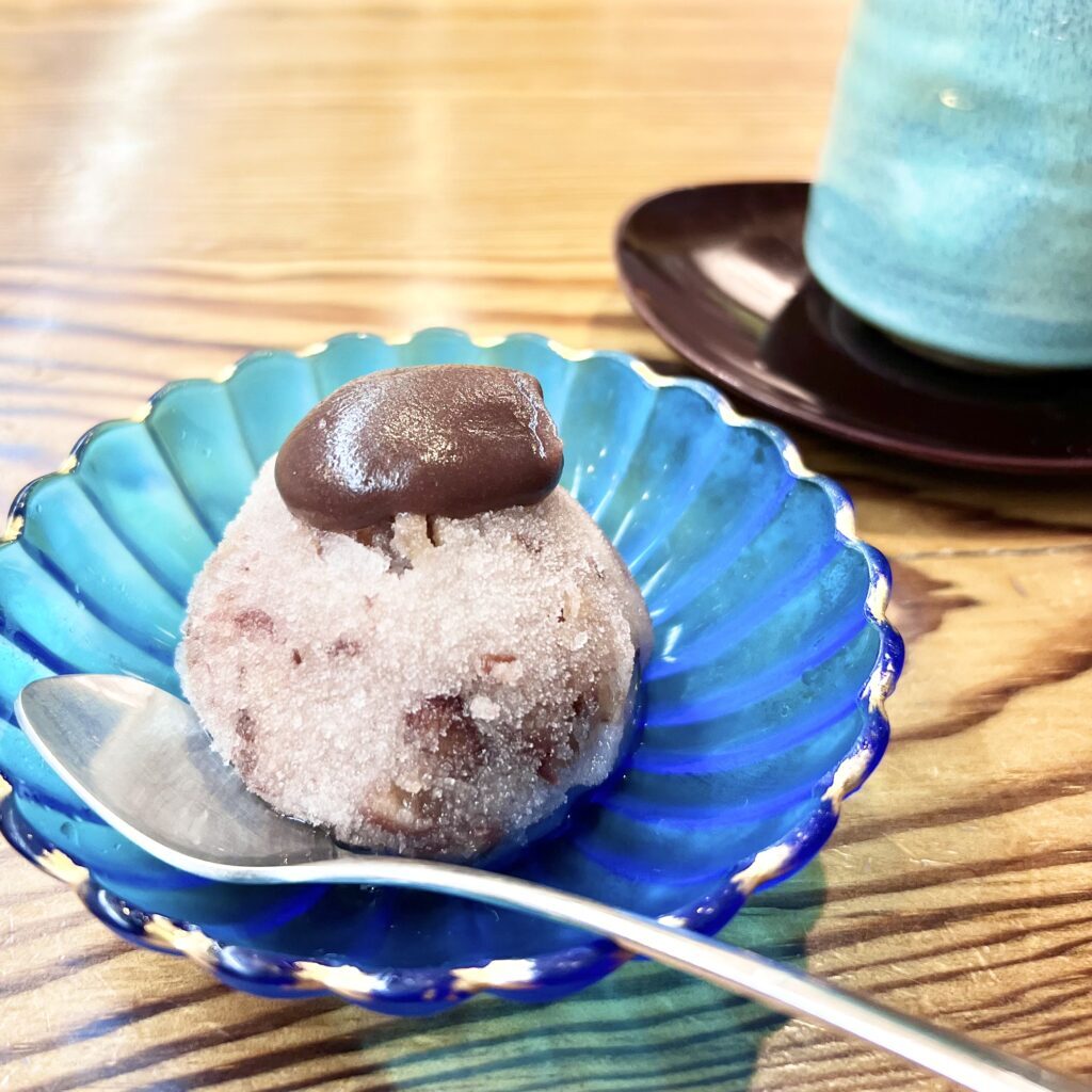 最後の甘味は数種類から選ぶことができます。今回は「小倉シャーベットあんこ蜜」。暑い日にぴったりの涼やかな餡子の甘味でした。