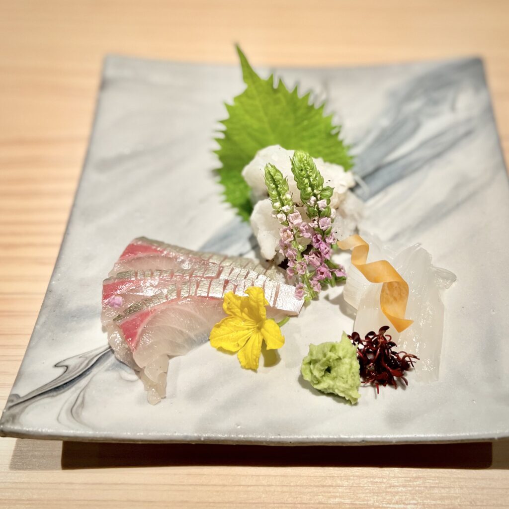 向付はお刺身。こちらもイカの飾り包丁をはじめ、とにかく仕立てが丁寧!まったりとしたイカの食感が楽しめました。