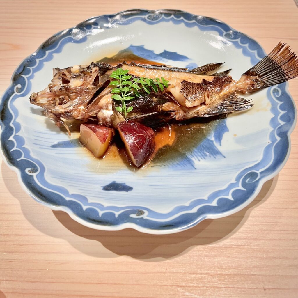 広島県では馴染みの深いメバルを煮付けで。1匹丸々いただけてとっても嬉しい!塩味と甘味の塩梅がちょうどよくて、驚くほど身がふっくらプリプリ!