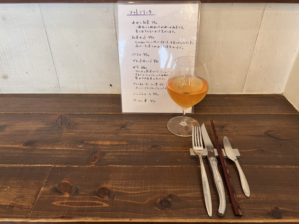 ランチはコースのみで、ワンドリンク制となっています。席につくとまずは飲み物をオーダー。