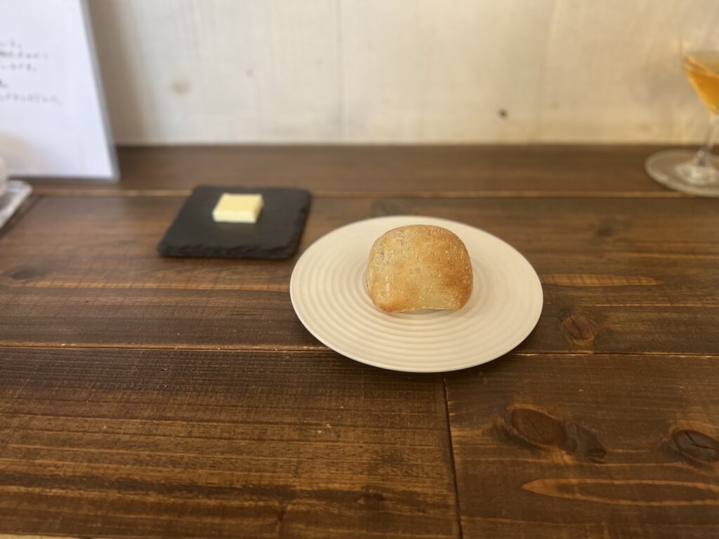 焼きたてでバターと共に提供されるパン。カリッとフワッと食感です。