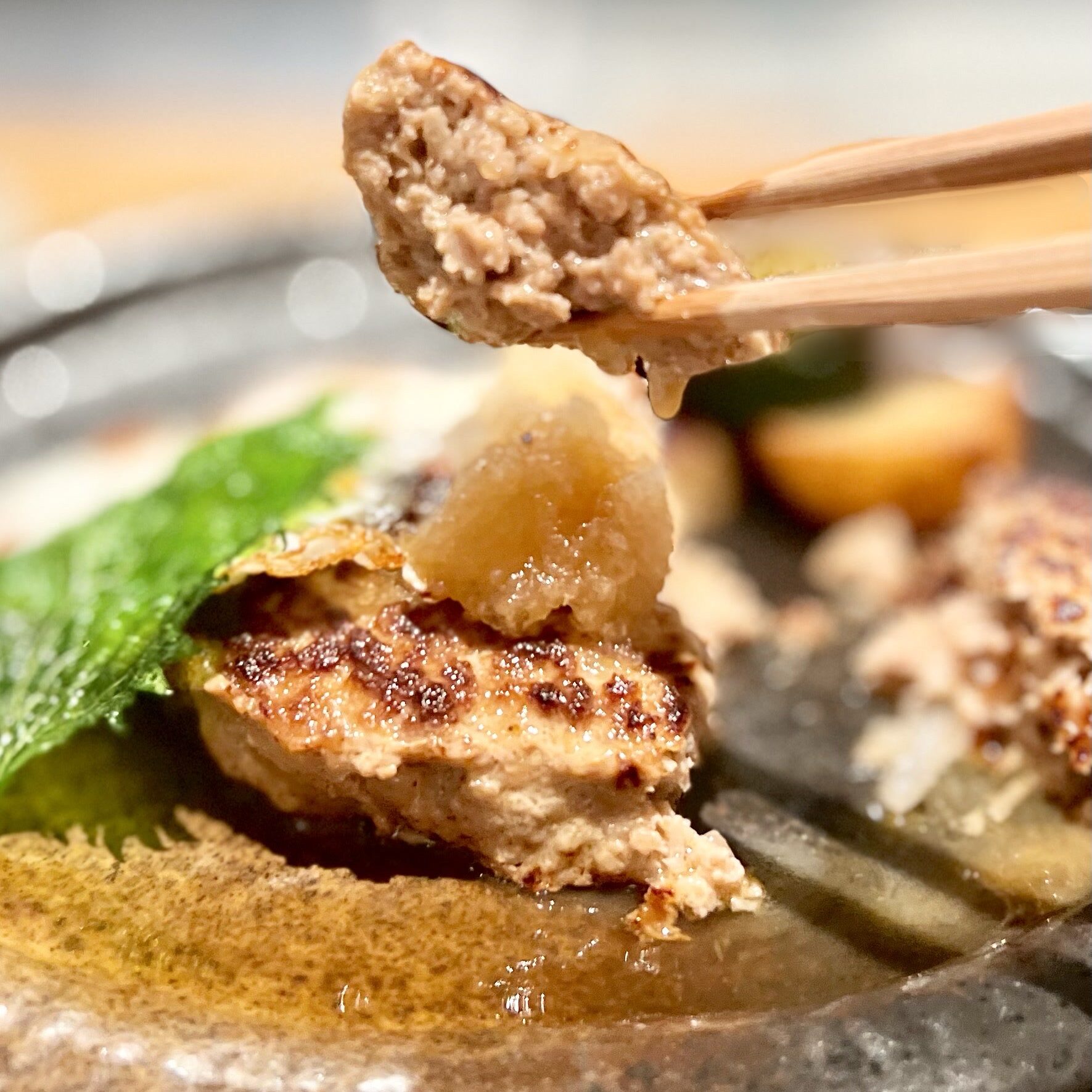 提供されたハンバーグには、目玉焼き!大葉も乗っていて和風テイストです。