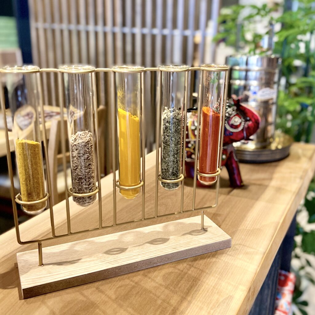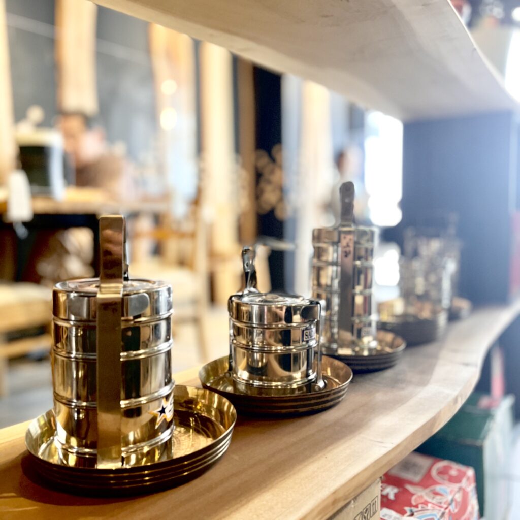 待っている間に店内を見ていると、インドのお弁当箱やスパイスなどのディスプレイ。可愛らしいです。