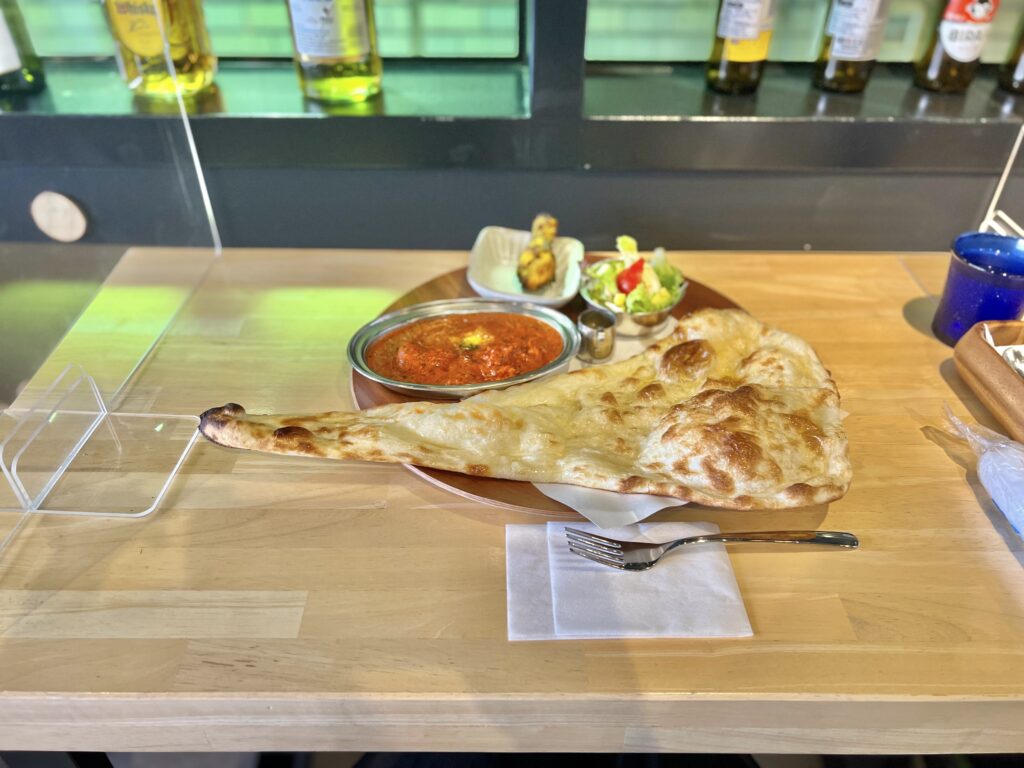 ナン、チョパティ、ライスから選択できます。チャパティも好きだけど、まずは北インドカレーらしくナンをお願いしましたよ。