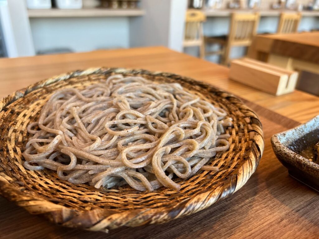 口にした瞬間、わーっとおそばの香りが広がります!もちもちの食感にしっかりとした風味、噛むとそば甘みを感じられ、濃いめでありながらもお出汁の効いた優しいつゆとの相性は抜群!