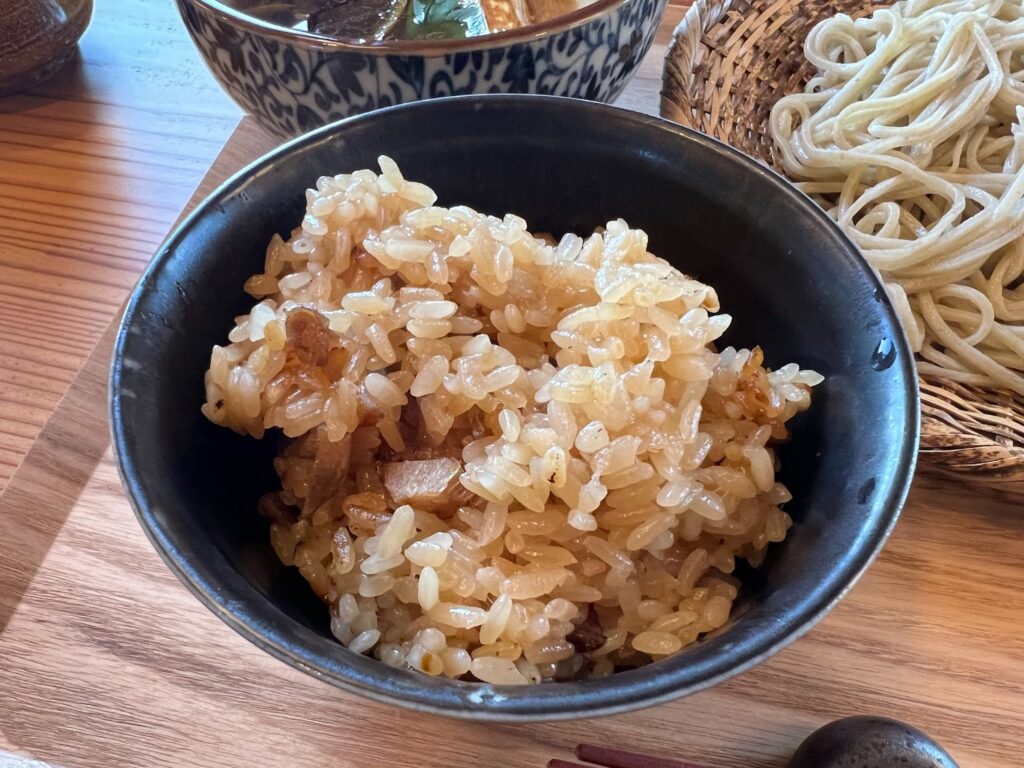 おそばのつゆとお出汁で炊いた、モッチモチ食感がクセになるおこわ。