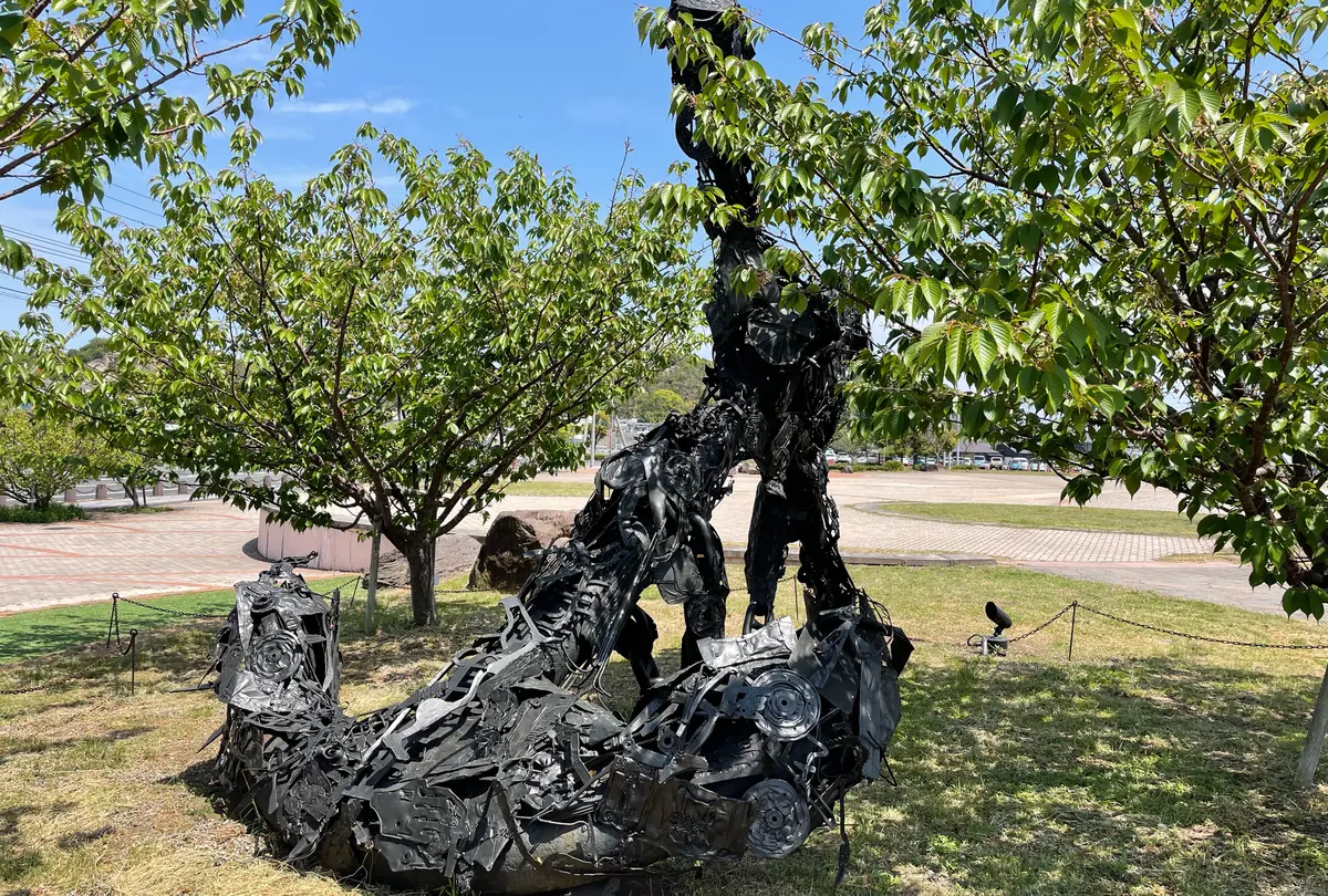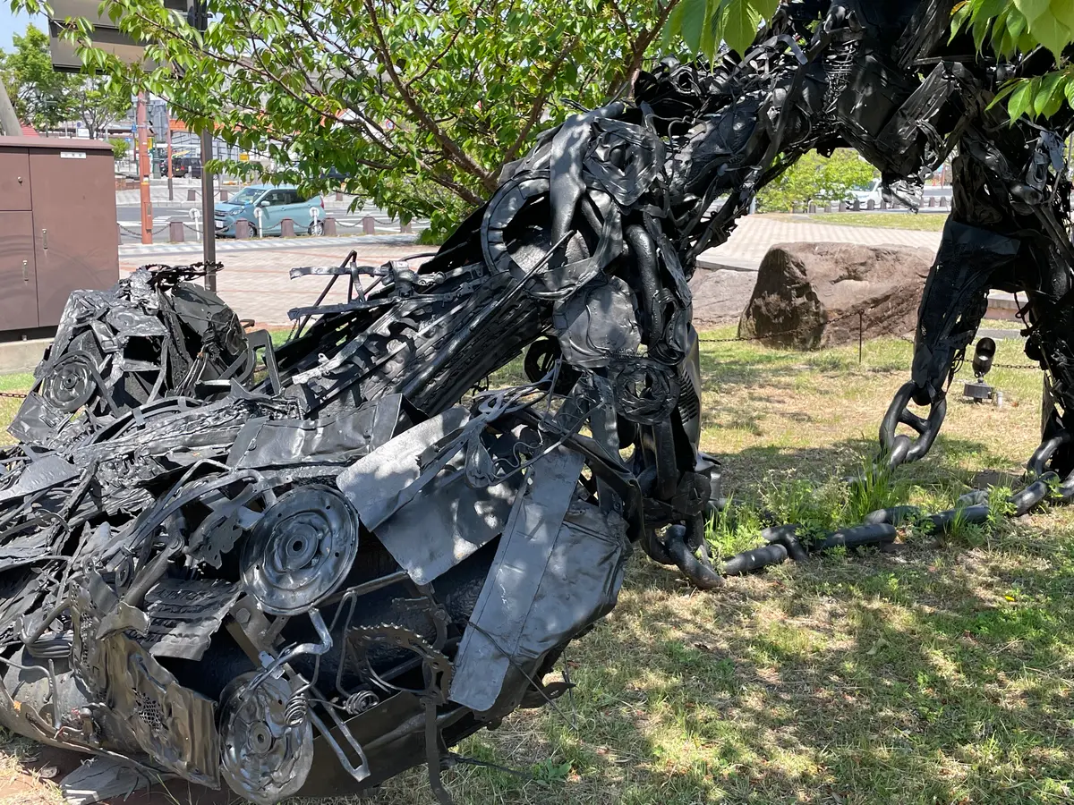 旧日本軍の軍艦のいかりを用いて製作された巨大立体アート作品。玉野市内で集めた鉄の廃材を溶接して付け足しながら年月とともに形を変えてきた成長する作品。海底での付着物が年月とともに増えていく様をアートに落とし込んで表現されています。