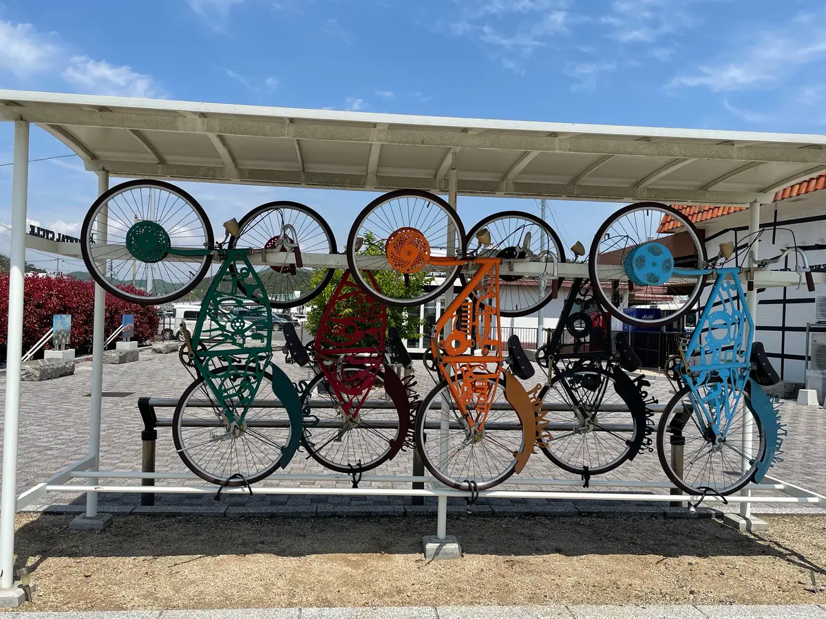岡山県玉野市築港1丁目1にある宇野駅は、アートで有名な駅として知られています。2020年にリニューアルされた宇野駅は、イタリアのアート作家エステル・ストッカー氏が手掛けたお洒落でモダンな外観が素敵。岡山駅から1時間ほどでアクセスでき、カラフルで可愛らしいレンタサイクルも駅前にあります。