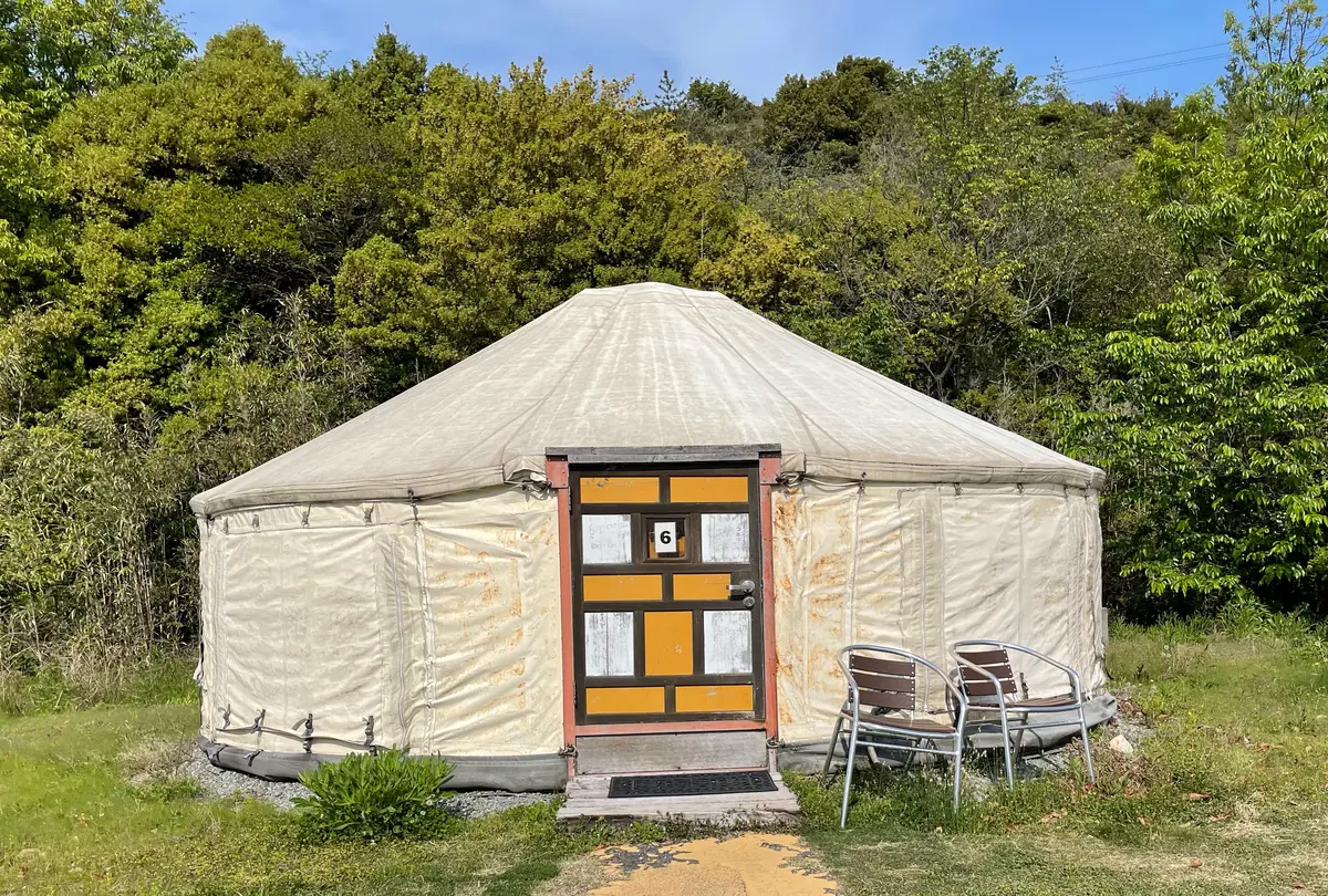 直島町にある「直島ふるさと海の家 つつじ荘」は、宿泊施設として和風コテージ、トレーラーハウス、パオの3タイプから選べます。特に「パオ」は、モンゴルテントのような造りで異国情緒が味わえ、目の前に海があるので波音を聴きながらゆったりとした時間が過ごせます。また、ビーチやバーベキュー場もあり、子供から大人まで楽しめます。駐車場や売店もあり、ベビーカーもOKで食事持ち込みも可能です。口コミでは、海が綺麗でビーチもおすすめとの声がありました。