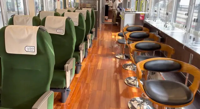 こちらの素敵な観光列車に乗って早速出発です〜!