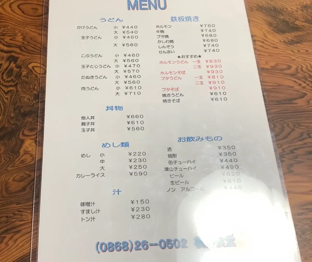 メニューにはおいしそうな鉄板焼きメニューが並びます。文字を見るだけでお腹が空くなあ🤤