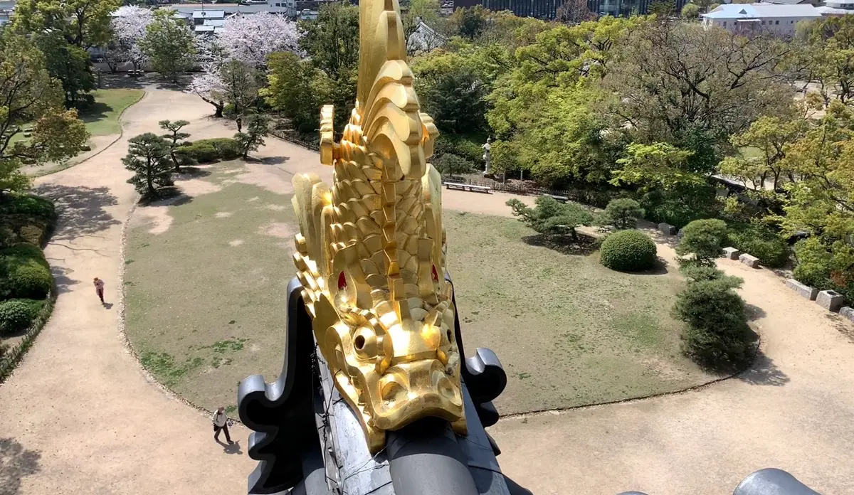 ピカピカのどデカいシャチホコを窓から見れます😳