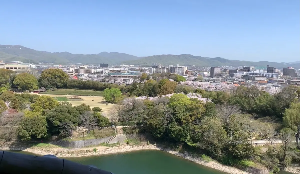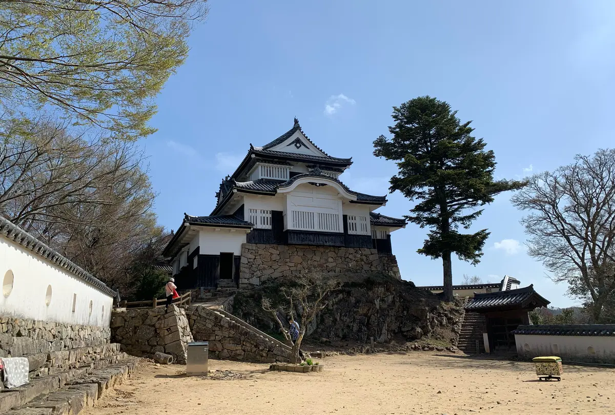 津山城はこんな感じ!岡山城よりも大きい印象です。春は桜の名所としても知られる、桜の木に囲まれたお城の跡です🌸