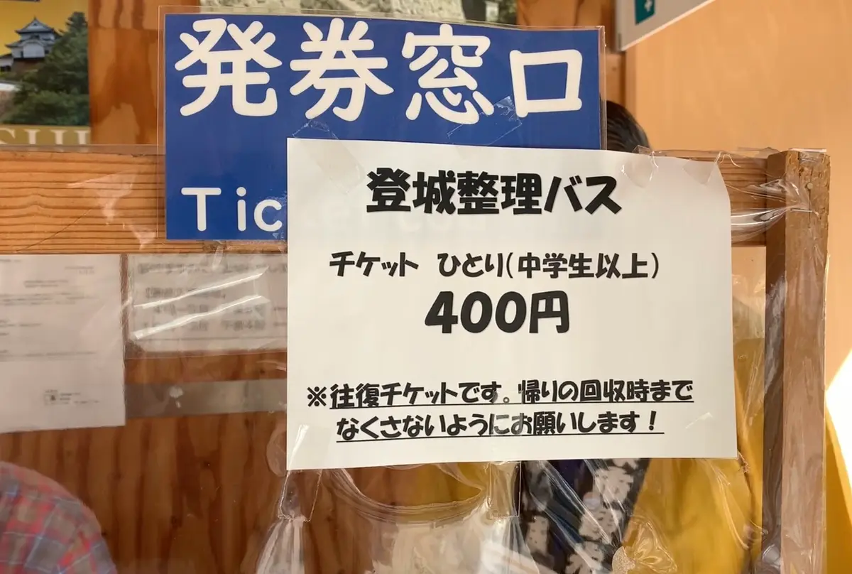 駐車場から城までは道が狭いのでバスで行きます🚌