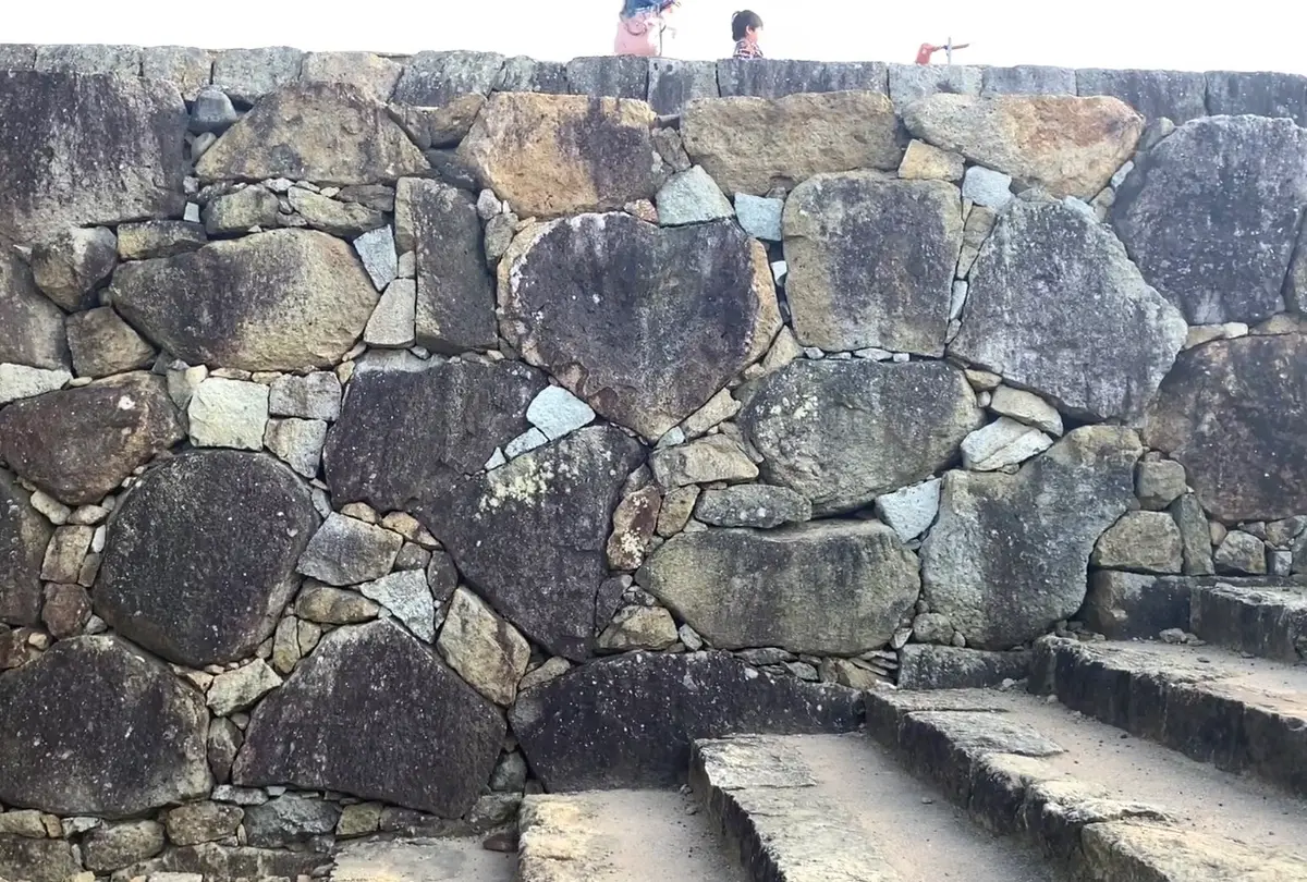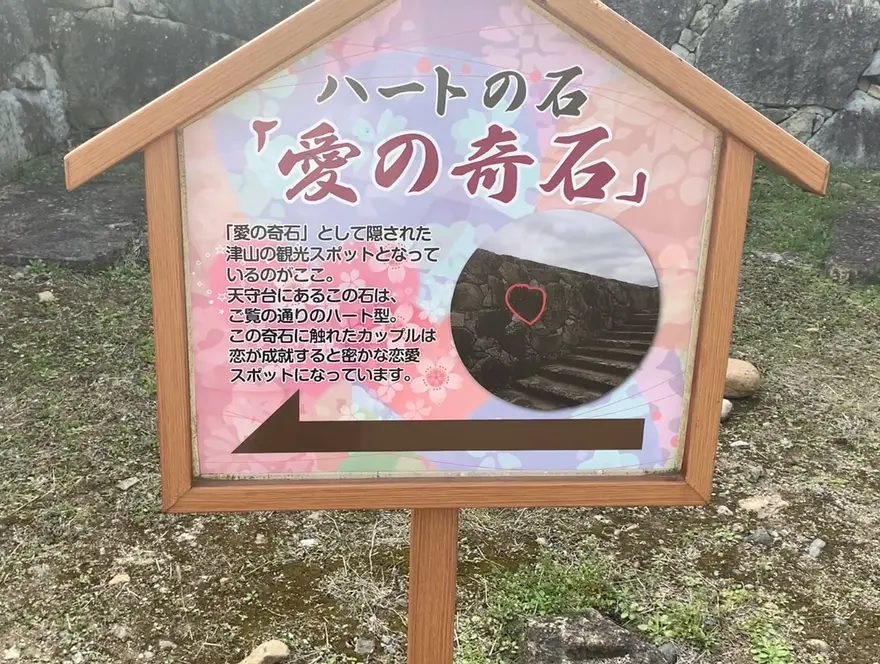 石垣にあるハート形の石!カップルで触ると恋が成就するそうです…💖私は1人で触りましたが、1人だとなにが起きるかな🤔