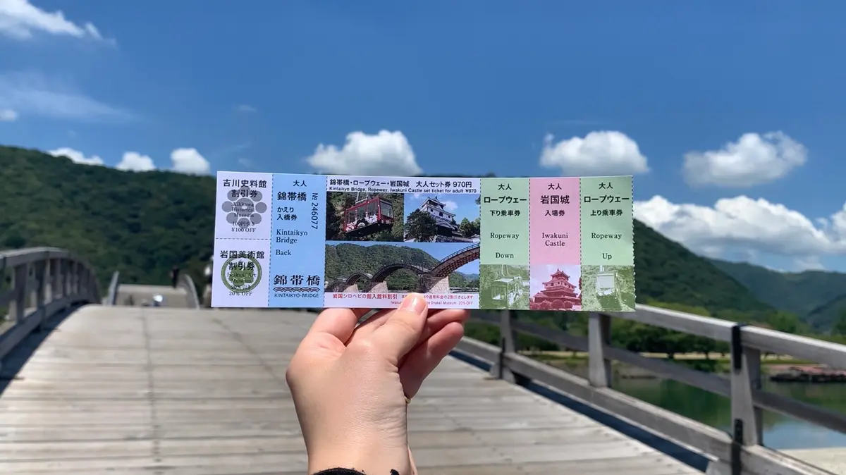 今回は錦帯橋の往復にロープウェーと岩国城の入場券が含まれたセット券を購入しました!