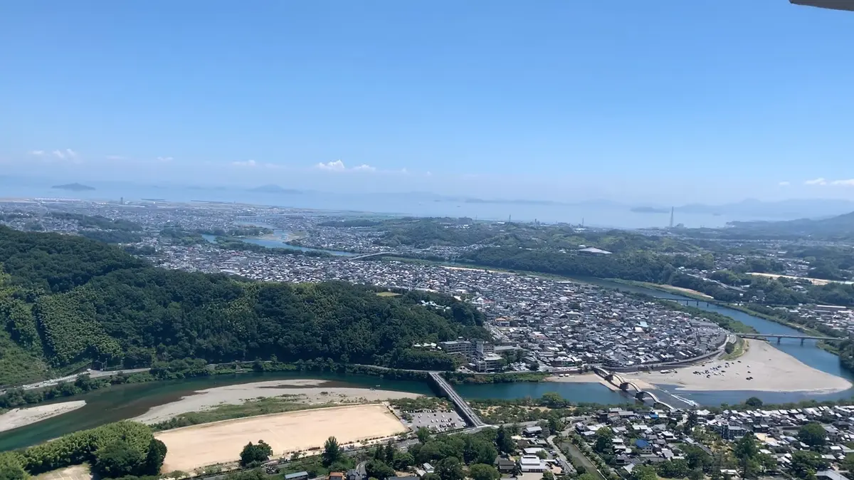 窓からは岩国の街や瀬戸内海、先ほど渡った錦帯橋も見えます👀!