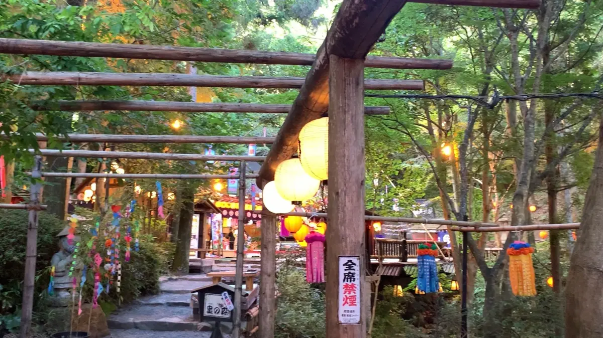 店内に川が流れていたり、橋がかかっていたり、火が焚かれていたり…🔥