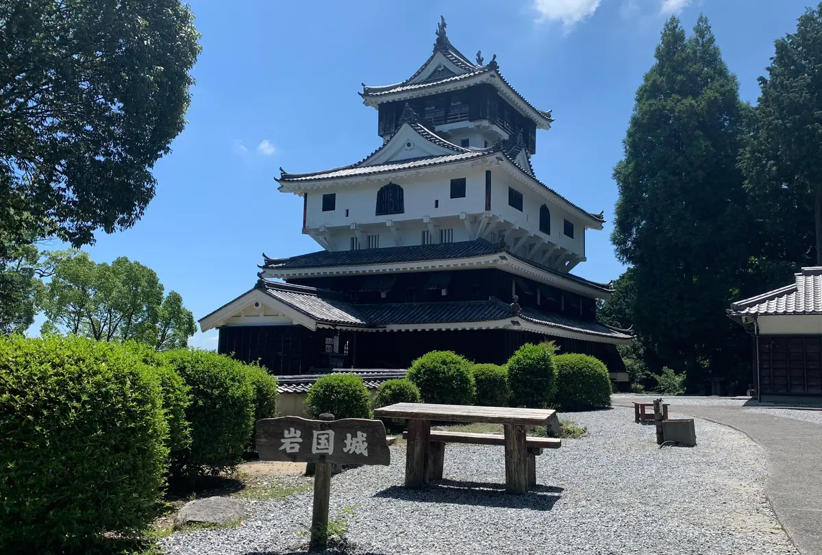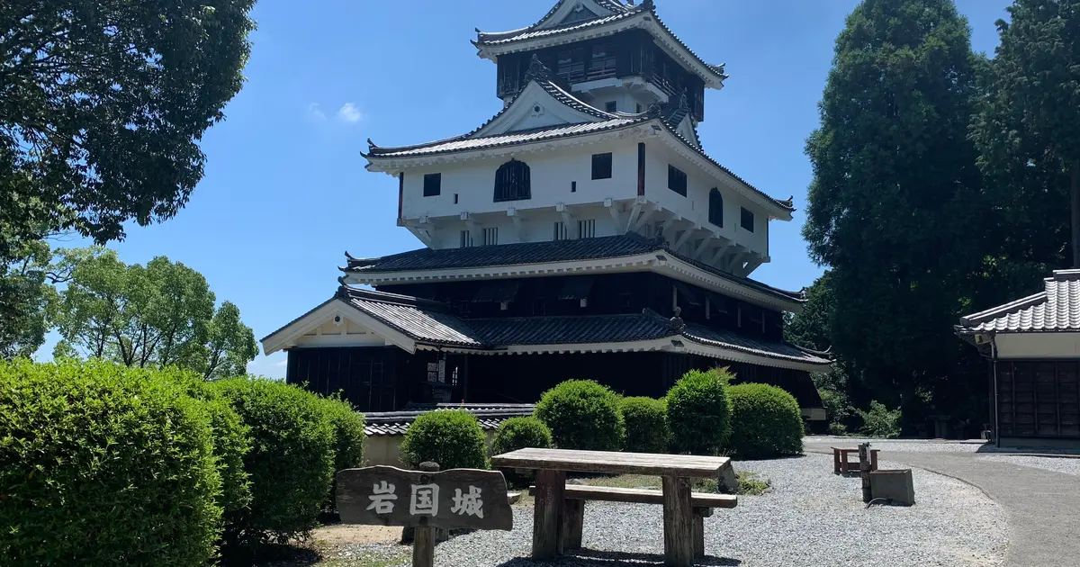 「岩国城」は山口県岩国市にある城であり、観光名所としても知られています。山頂に立つ城の展望台からは、錦帯橋や岩国の城下町の絶景が見られます。ロープウェイで上がって、そこからまた少し山道を歩くと岩国城に到着します。
