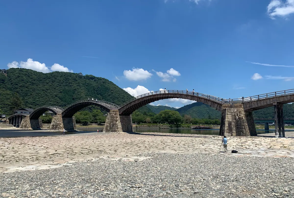山口県岩国市にある「錦帯橋」は、日本三名橋のひとつで日本を代表する木造橋です。5連アーチが美しく、1922年には国の名勝に指定されています。季節ごとに美しい景観を見ることができ、観光スポットとして多くの観光客で賑わいます。