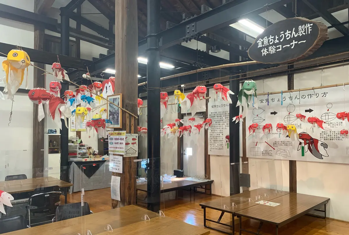 ここでは金魚ちょうちん作り、柳井縞、藍染め体験ができます!