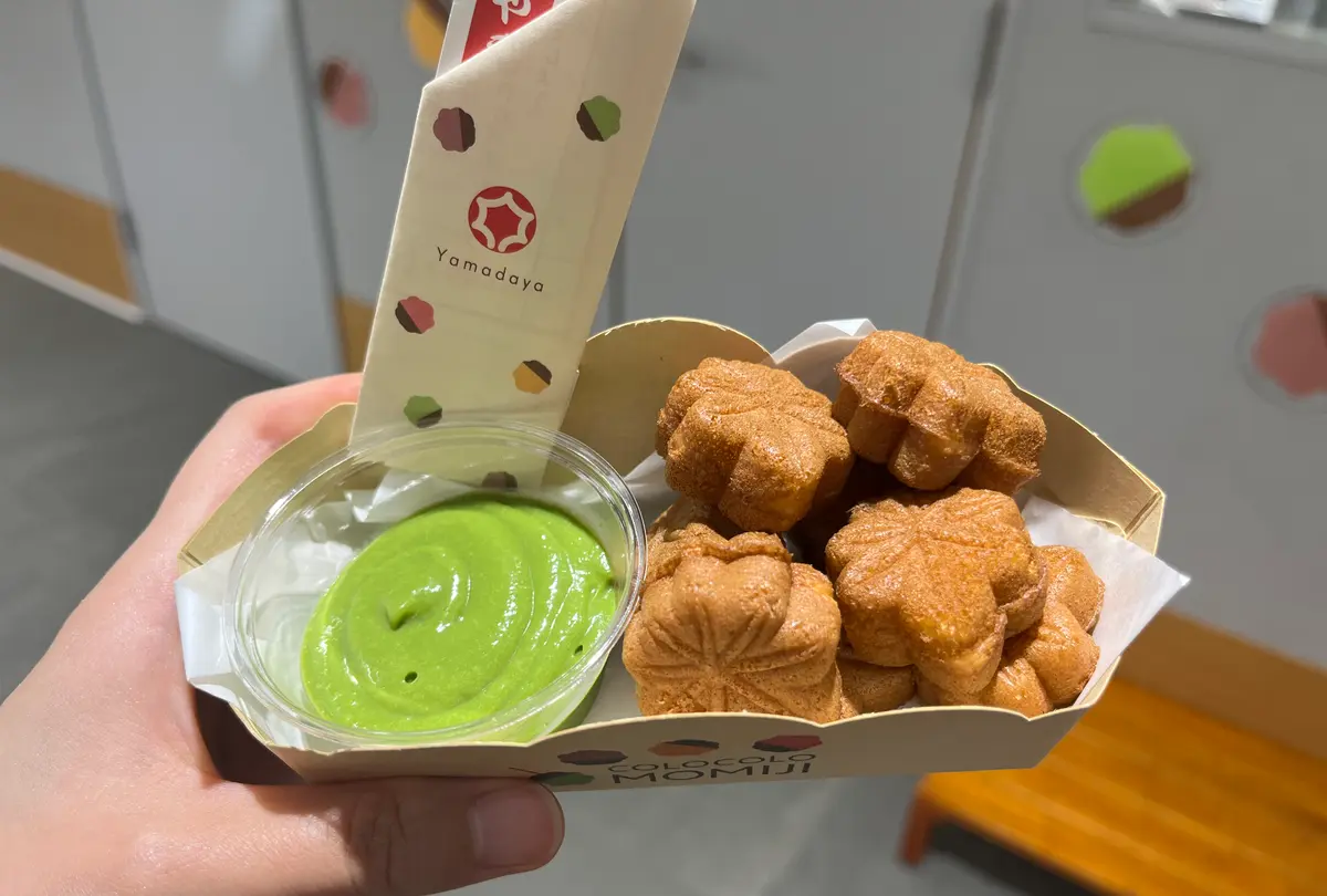 抹茶のソースがほろ苦くてもみじ饅頭との相性抜群✨