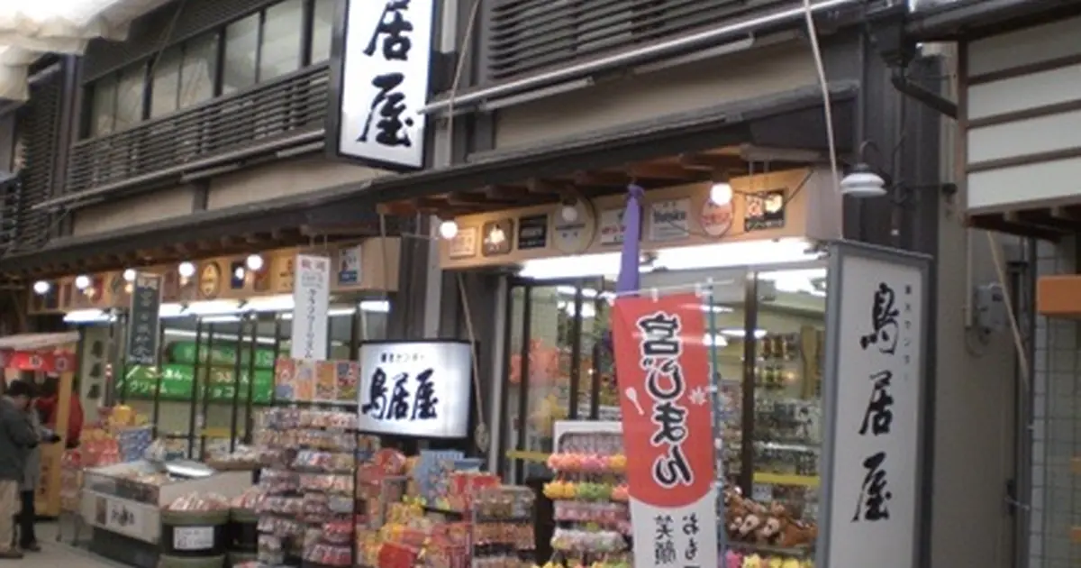 「鳥居屋」は、広島県廿日市市宮島町にある宮島観光センターです。こちらでは、食事やもみじ饅頭などの宮島土産を販売しています。特に、クロワッサン生地のもみじ饅頭やモミクロが人気で、オープンキッチンで作り方を見学することもできます。通常の商品も取り扱っており、幅広いニーズに対応しています。