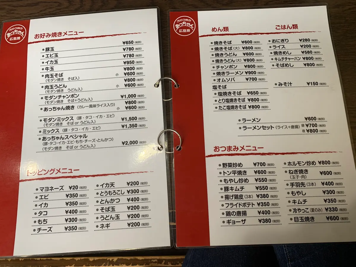 お好み焼き屋さんなので、美味しそうな鉄板焼きメニューがメニューに名を連ねます…🤤