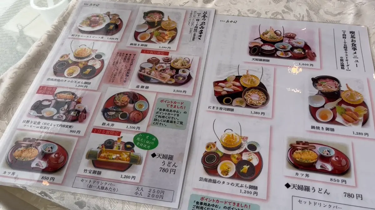 広島県竹原市にある「道の駅たけはら 食事処あゆむ」は、道の駅の中の食事処です。峠下牛のうどんや牛丼、カレーや地元竹原の真鯛の漬け丼等のメニューを味わうことができます。(2023年10月21日(土)〜)